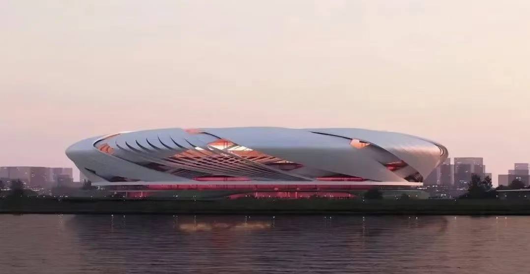 長沙是中國革命的發(fā)源地,方案以“紅色搖籃,蝶舞湘江”為創(chuàng)作原點,由正反各九片單元網(wǎng)殼交錯疊合,與內(nèi)部的紅色體育場共構體育場基本形態(tài),使長沙這片熱土淬煉出的人文精神盡顯于丹韻銀律的編織錯動之中。