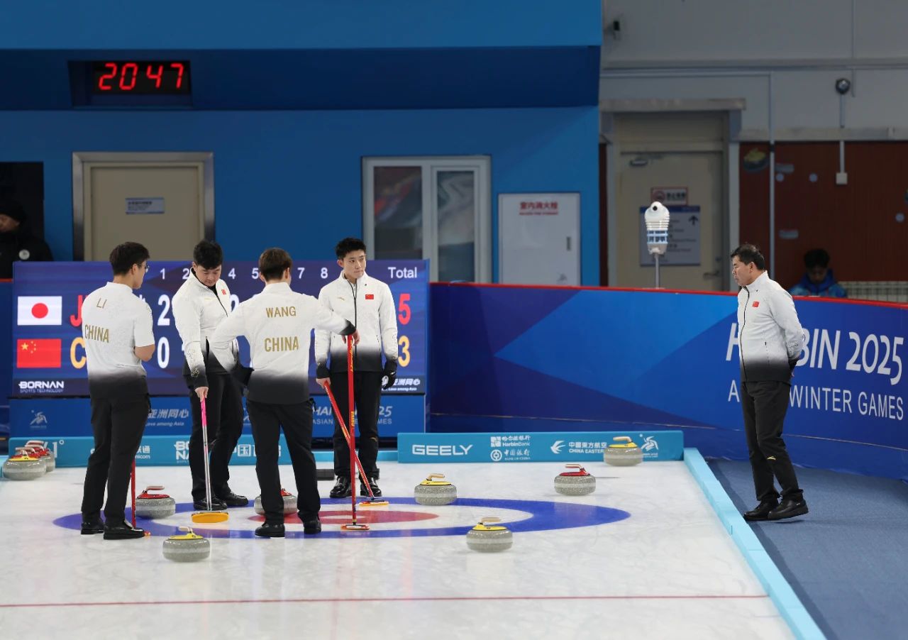 哈爾濱亞冬會(huì)男子冰壺循環(huán)賽在2月12日迎來(lái)了中國(guó)隊(duì)對(duì)陣日本隊(duì)的比賽,這場(chǎng)比賽前,中國(guó)隊(duì)4戰(zhàn)全勝已經(jīng)鎖定B組晉級(jí)資格。開賽后由中國(guó)隊(duì)執(zhí)黃色壺先進(jìn)行投擲,經(jīng)過(guò)系列賽的磨合,隊(duì)員們之間顯得更加默契,大家從賽前熱身階段就保持著頻繁的交流,教練員也在熱身階段走上冰場(chǎng)和隊(duì)員們一起交流部署。