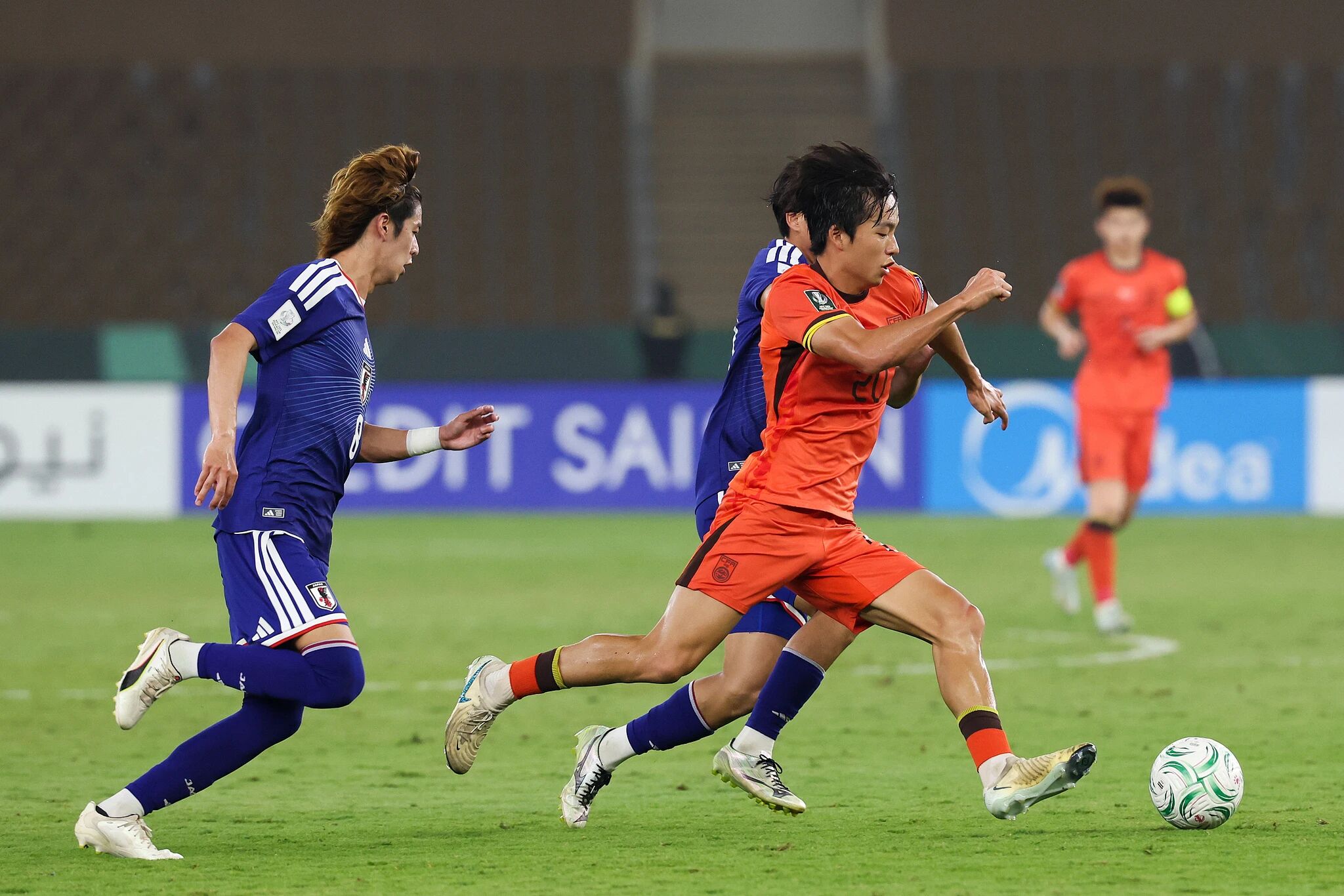 本屆比賽之前,中國隊(duì)曾5次參加U23男足亞洲杯,全部折戟小組賽,總共僅取得過兩場勝利。本場決賽之前,中國隊(duì)在常規(guī)時間和加時賽未丟一球,是本屆賽事防守最好的球隊(duì),而日本隊(duì)的狀態(tài)同樣出色,是所有球隊(duì)中進(jìn)攻活力最猛的一支。比賽開始后,雙方?jīng)]有過多試探便直接發(fā)起攻勢,前10分鐘之內(nèi)日本隊(duì)就已多次考驗(yàn)門將李昊的發(fā)揮,而向余望的前插頭球攻門也驚出了日本隊(duì)后防一身冷汗。
